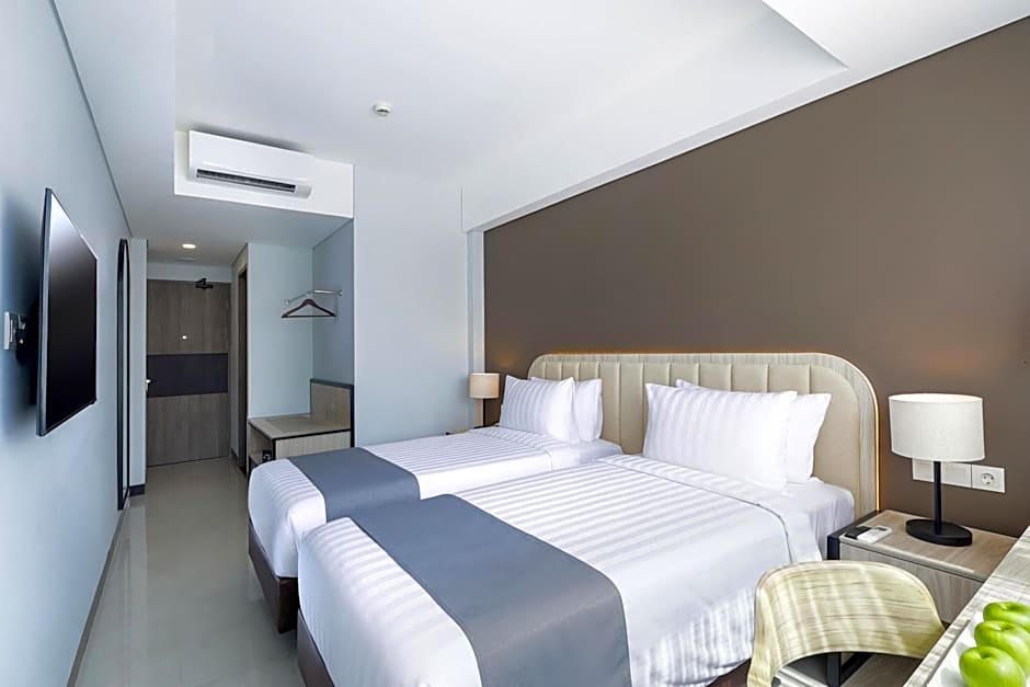 Guests will have a special experience as this twin room features a rooftop pool. Offering free toiletries and bathrobes, this twin room includes a private bathroom with a shower and slippers. The air-conditioned twin room offers a flat-screen TV with cable channels, a tea and coffee maker, a wardrobe, a safe deposit box as well as city views. The unit offers 2 beds.